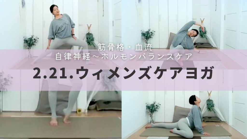 【2/21】脚の高重力筋・股関節・骨盤をじっくりと整える。のぼせやすい春、骨盤〜脚に血流を運びバランスをとる。脚の冷え・股関節の硬さ・骨盤の傾き・背中の硬さに。