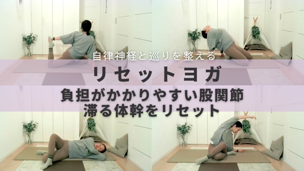 股関節と体幹のこわばりを抜いて、頑張る体をリセット。骨盤内の循環をよくして、自律神経バランスを生む骨盤の呼吸まで行います。