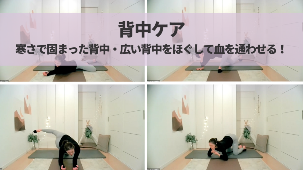 寒さで丸く広くなった背中を解放していく。腰から首まで楽になります。脊柱にへばりついた筋肉を動かして、大事な背骨カーブを取りもどす。