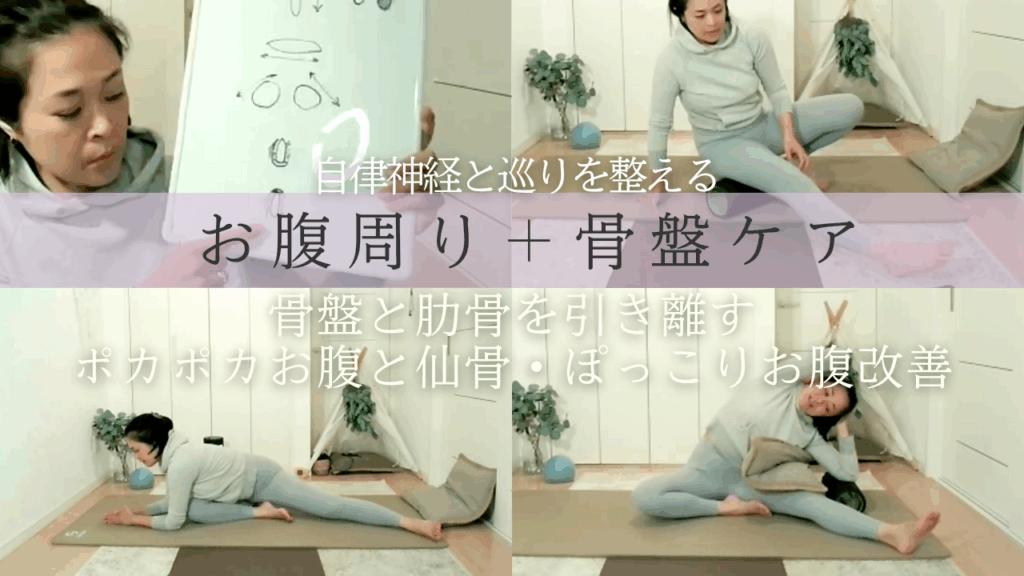 【スムーズな骨盤の動き】骨盤からの動きで体が変わる。お腹周りの体型変化・ストレスによる体の疲れと乱れ・冷え・PMS〜生理痛・更年期の生理の乱れに。
