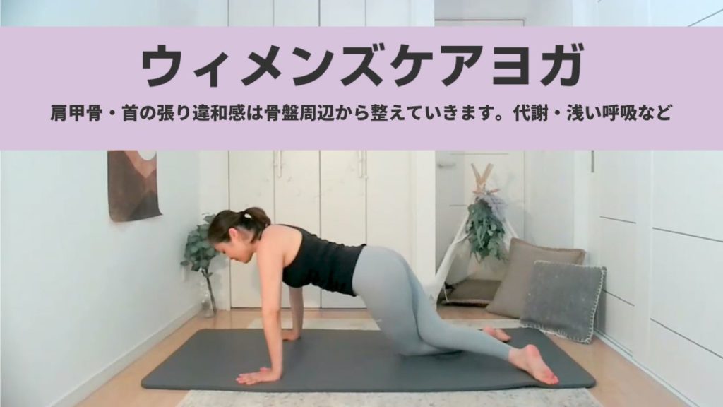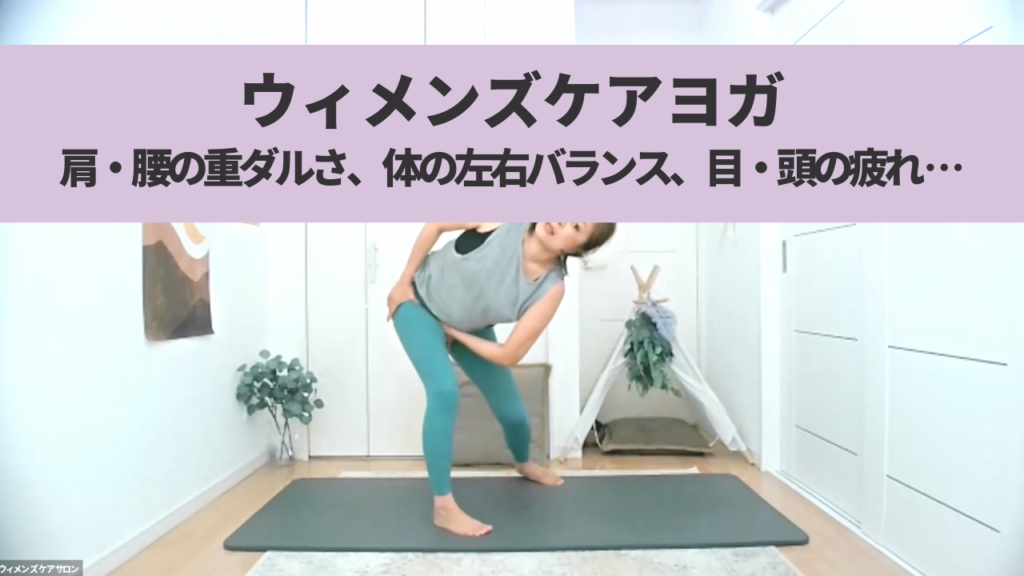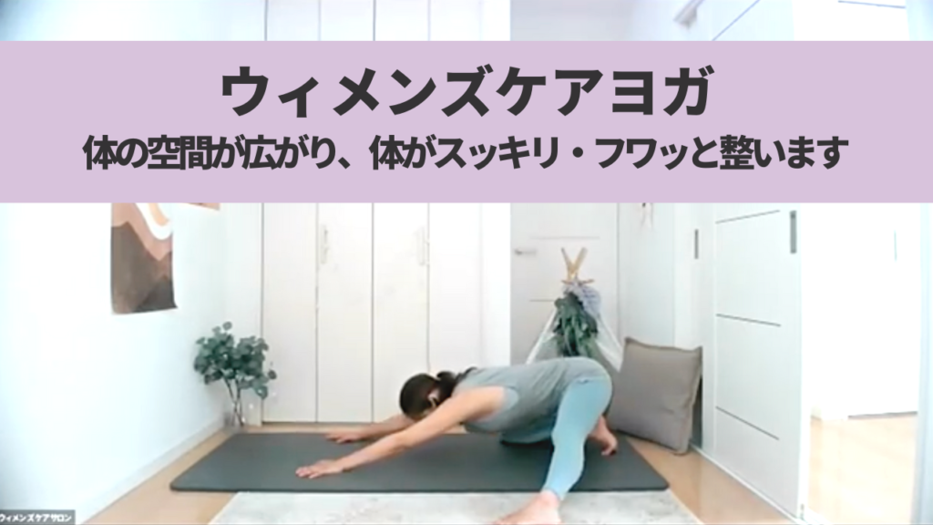 夜のウィメンズケアヨガ。生理前・寝付けない・肩の張り・食欲不信・めまい・股関節周辺のケアを入れました。
