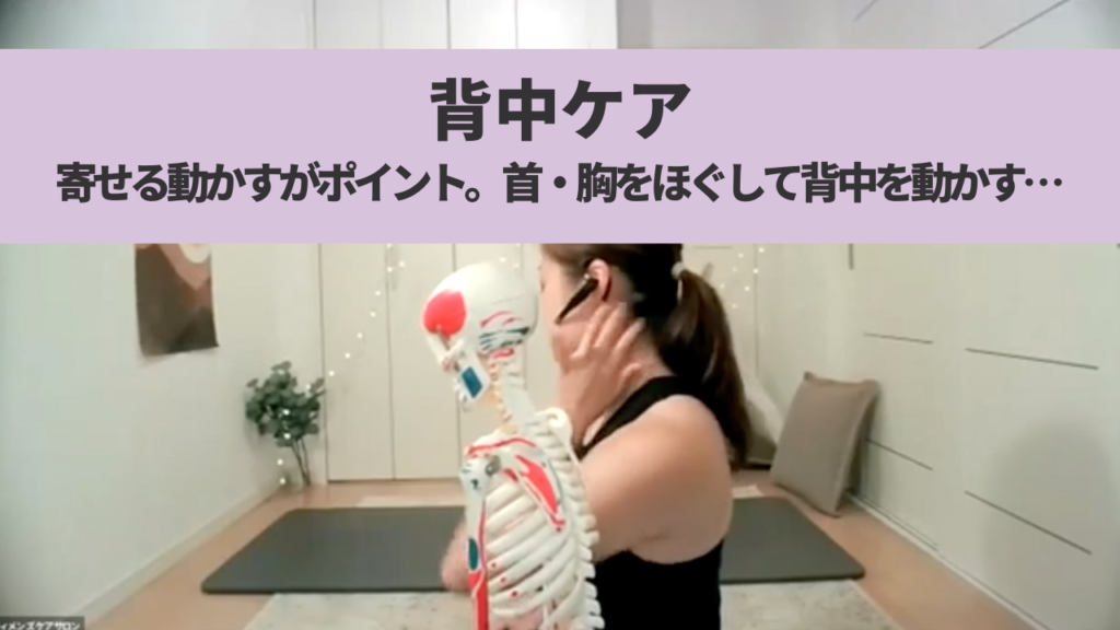 寄せる動かすがポイント。首・胸をほぐして、背中の下から上までたっぷり動かして背中を楽にします