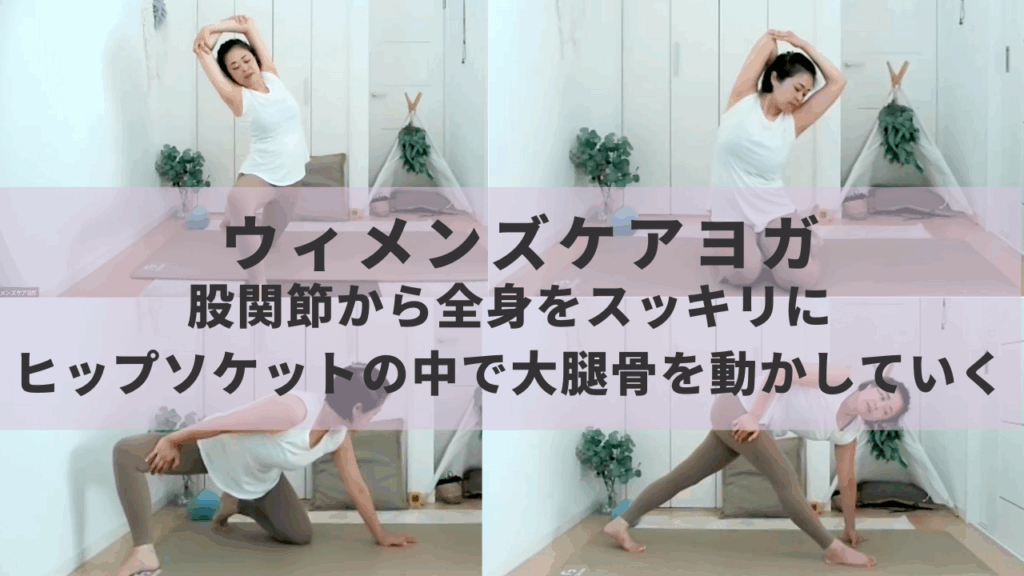 下半身を目覚めさせる、めぐりのセルフケアヨガ。ヒップソケットの中の大腿骨の動きを改善させていきます。
