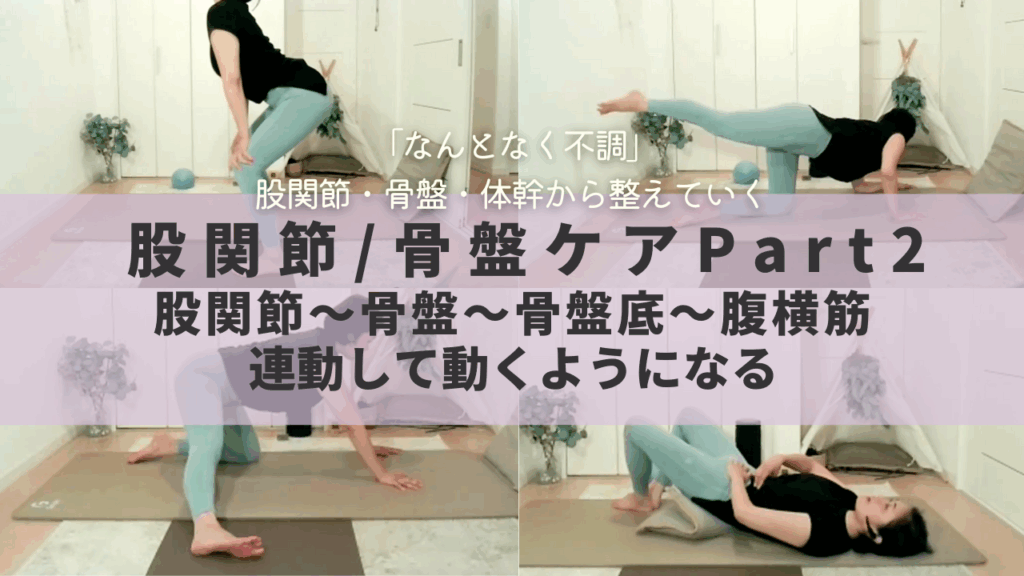 股関節・骨盤・インナーユニットの連動を体に落とし込むセルフワーク。骨盤・股関節・体幹の弱さ、お腹の冷え、上半身のぼせ、生理痛とPMS、浮腫みやすい脚をケア。