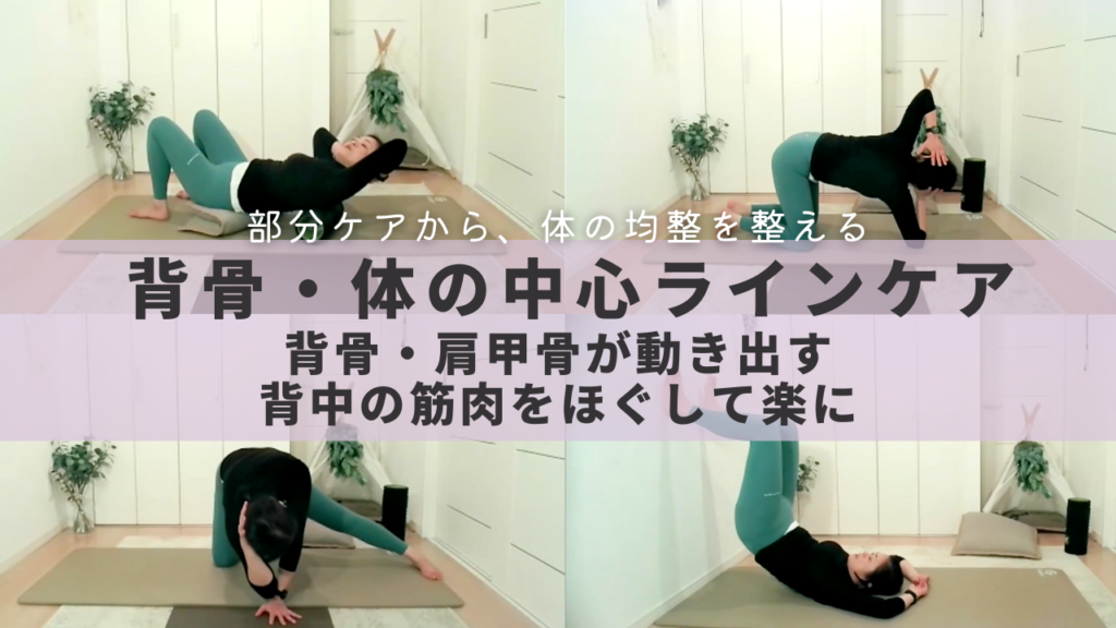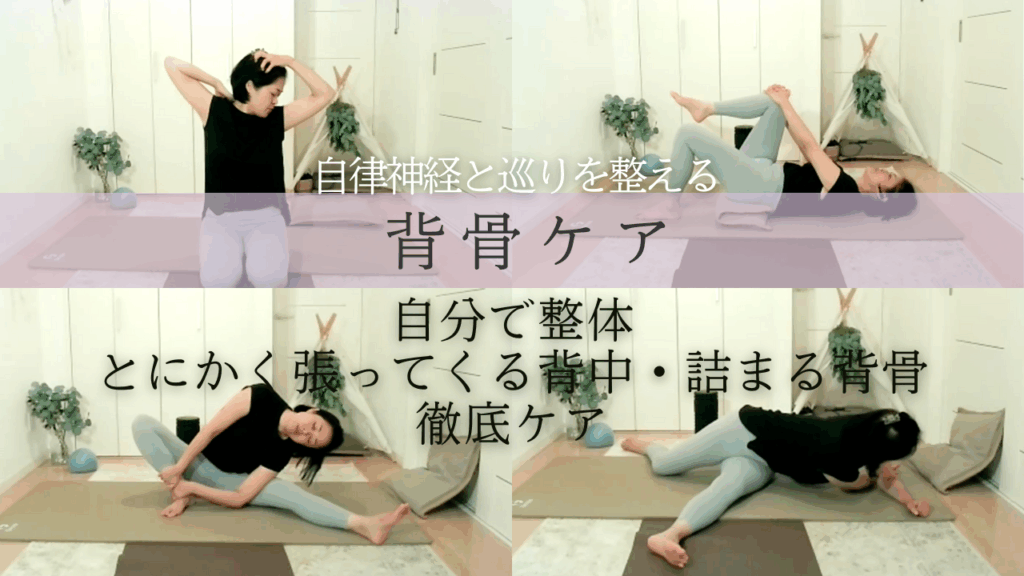 深層筋まで届く、背骨モビリティケア。女性の背中をやさしく解く、癒しのセルフケアで交感神経の緊張から解放される。(首・肩・肩甲骨の間・背中のコリ、ガチガチバキバキ背骨に)