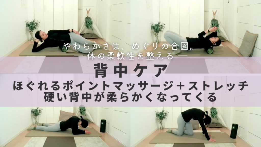 【ほぐす+ストレッチ】背中の硬さが取れていくケア。背中のやわらかさは自律神経〜体調・内臓の調子を回復させる。脊椎・広背筋・脊柱起立筋・腰方形筋の柔軟性に。
