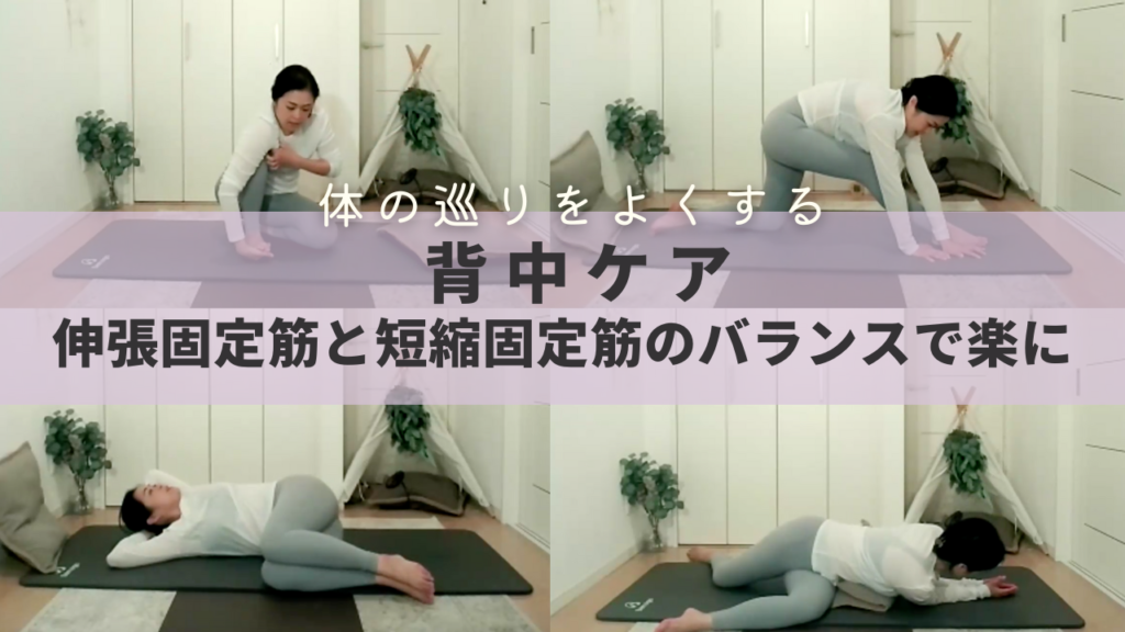 辛さを感じるのは、伸びて固定される筋肉を抱える「背中」。背中の張りは、巡りの滞りの現れ。縮んで固定される筋肉とのバランスを取り戻すワークで、張ってる背中を元から調整→巡る体に。