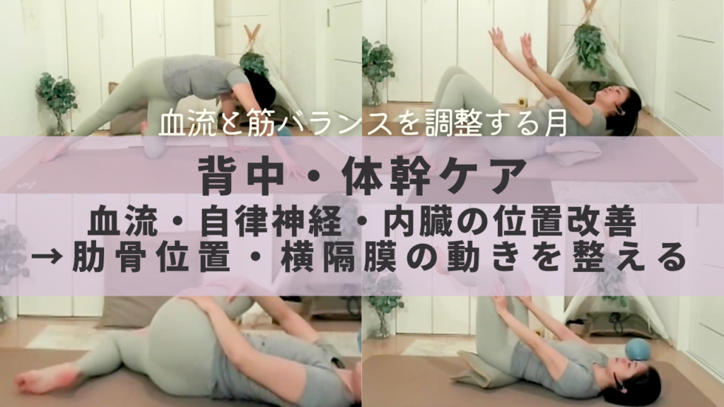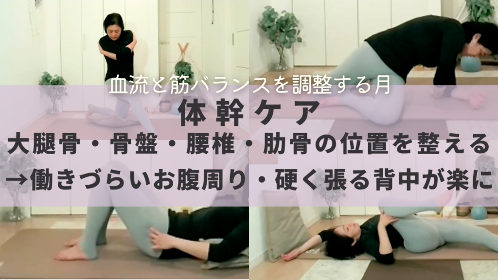 体幹を安定させる方法を練習。頭・背中が軽く感じられるように!気象病の症状(頭痛・だるさ)、血液循環・自律神経・内臓の位置のためのケア。