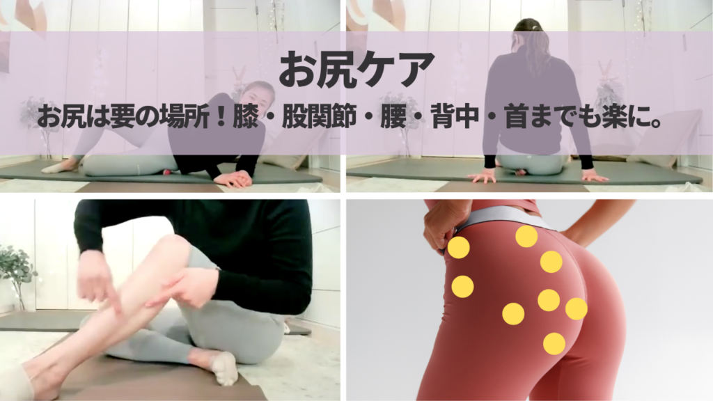 こびりついた癖をほぐして解消→臀筋を目覚めさせる。お尻は代謝UPと背中&股関節の調整ポイント。体のコリ張り・骨盤の安定と内臓位置を良くしておきたい時にもオススメ!
