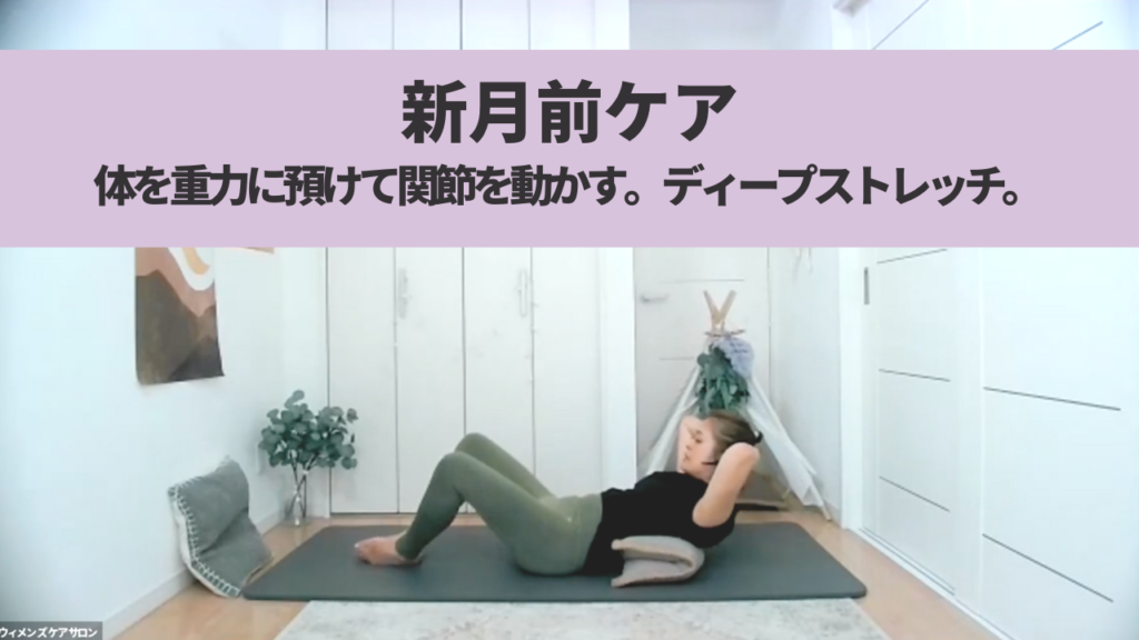 〈新月前ケア〉関節の可動性を高めて柔軟性が生まれるディープストレッチ。全身の緊張・股関節のつまり・むくみ・首筋のコリのケアにも。