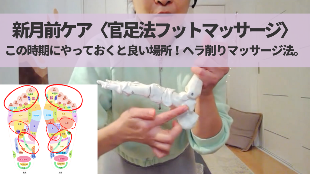 〈新月前ケア〉官足法フットマッサージ。年末年始にやっているといい胃腸・腎臓〜デトックスゾーン・肝臓・胆嚢・心臓・・生殖器・末端の血液循環UP。そして首肩・頭の中スッキリ・股関節など…